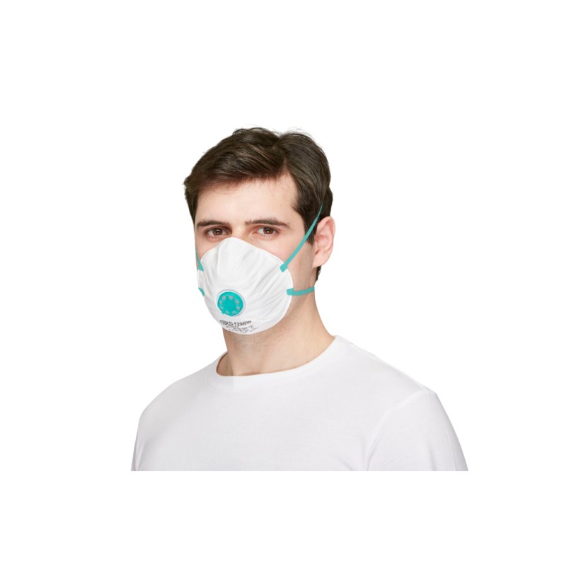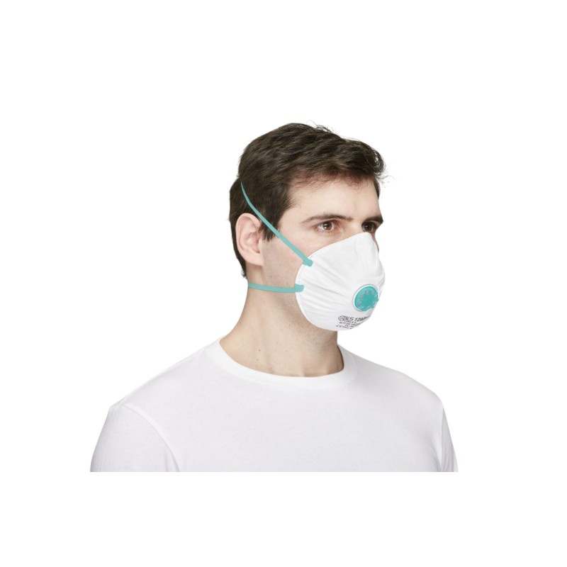 Cod. 424301 - Comoda mascherina a coppa con valvola di esalazione per una minore resistenza alla respirazione. Ponte nasale regolabile per una migliore aderenza. Guarnizione interna in schiuma su tutto il perimetro per il massimo comfort. Larghe bande elastiche.