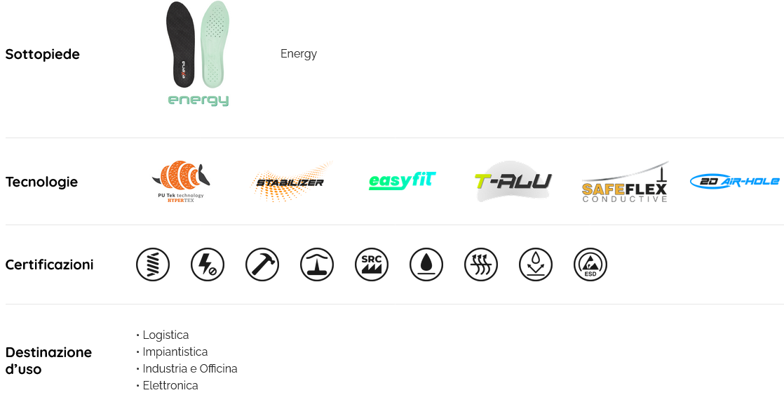 Risultati importanti anche per quanto riguarda l'antiscivolo, il design del battistrada infatti viene realizzato seguendo le ultime direttive EN 20345:2022, ottenendo valori superiori al 30% in termini di grip.